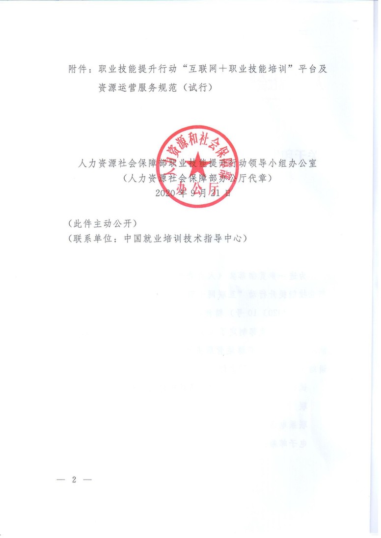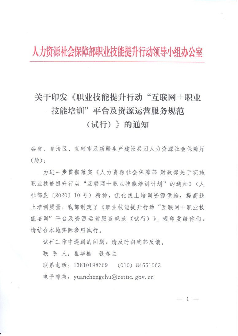 关于印发《职业技能提升行动“互联网+职业技能培训平台及资源运营服务规范(试行)》的通知